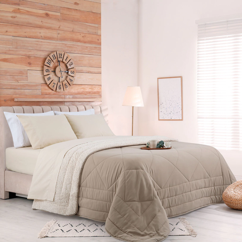 Acolchado Linea Duo King: Un toque de calidez y elegancia para tu dormitorio. Acolchado bitono de microfibra con un reverso de corderito que ofrece suavidad y confort inigualable. Diseñado para camas King Size de 280 x 250 cm, este acolchado combina estilo y funcionalidad, perfecto para aquellos que buscan calidad y diseño en cada detalle de su hogar.