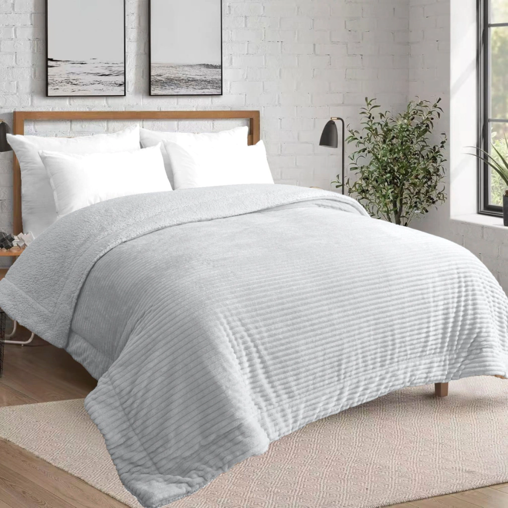 Abrígate con elegancia y calidez este invierno. El Acolchado Mollis King combina flannel jacquard de calidad premium con un reverso de corderito, asegurando un descanso confortable.