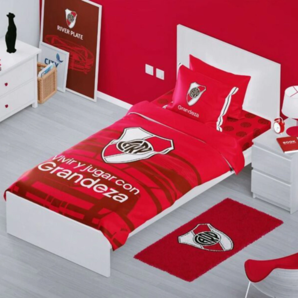 Celebra tu amor por River Plate con este acolchado de licencia oficial. Su estampado central único y calidad premium transformarán tu habitación en el santuario del hincha. Con medidas de 145 x 240 cm, es perfecto para camas de 1 1/2 plazas. ¡Dale a tu descanso la pasión de tu equipo favorito!