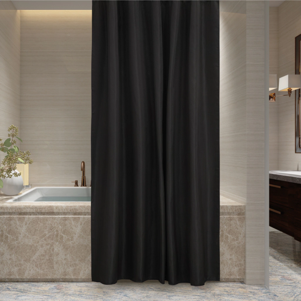 Renová tu baño con esta cortina de baño teflonada símil Dobby, que combina diseño premium y practicidad.