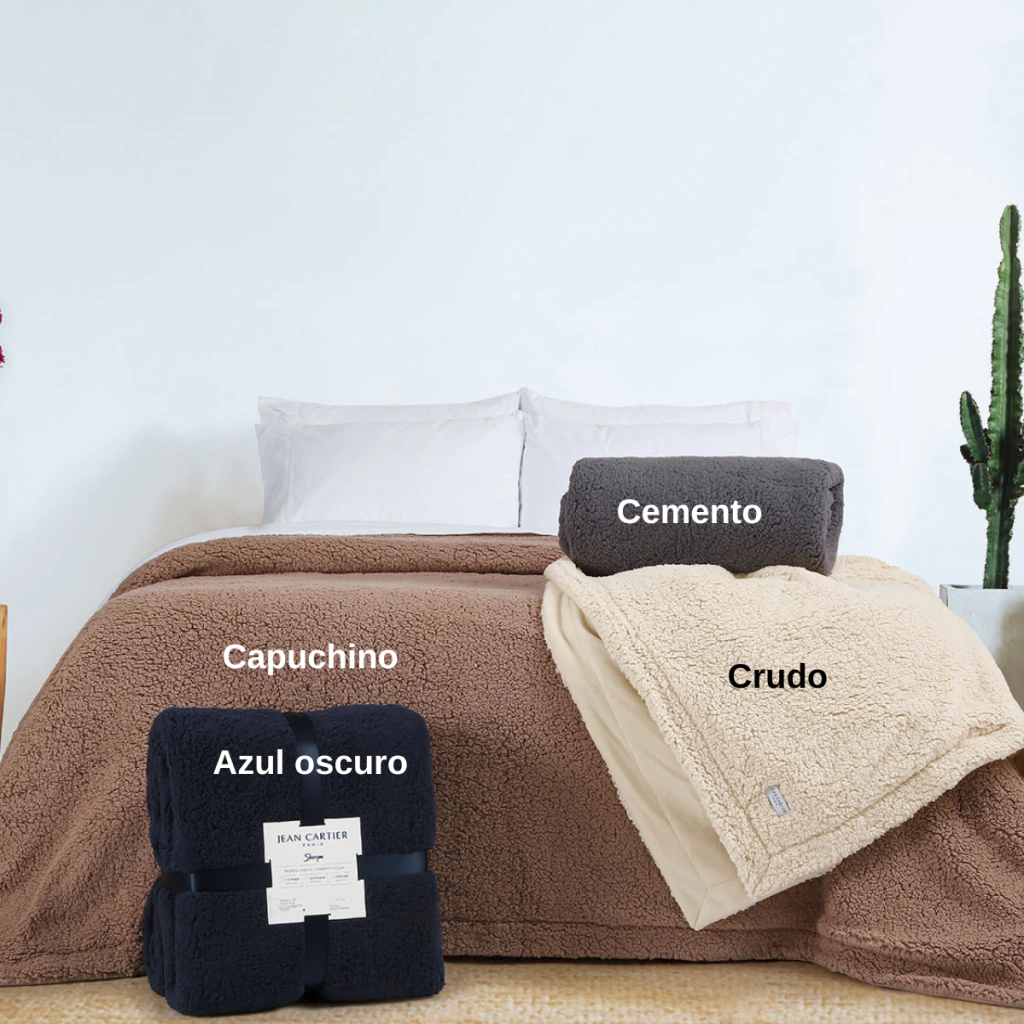Frazada Sherpa: perfecta para mantenerte abrigado en las noches frías. Confeccionada en doble capa de corderito y polar, ofrece suavidad y calidez inigualables.