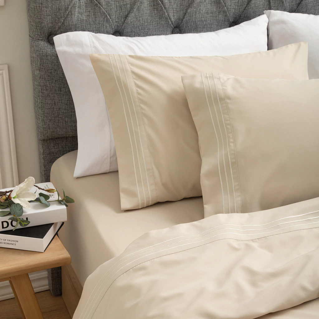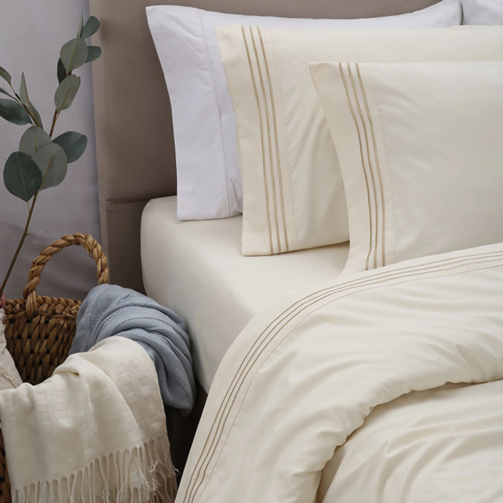 El detalle del embozo con triple festón bordado añade un toque de elegancia y sofisticación. ¡Transforma tu dormitorio en un oasis de bienestar!