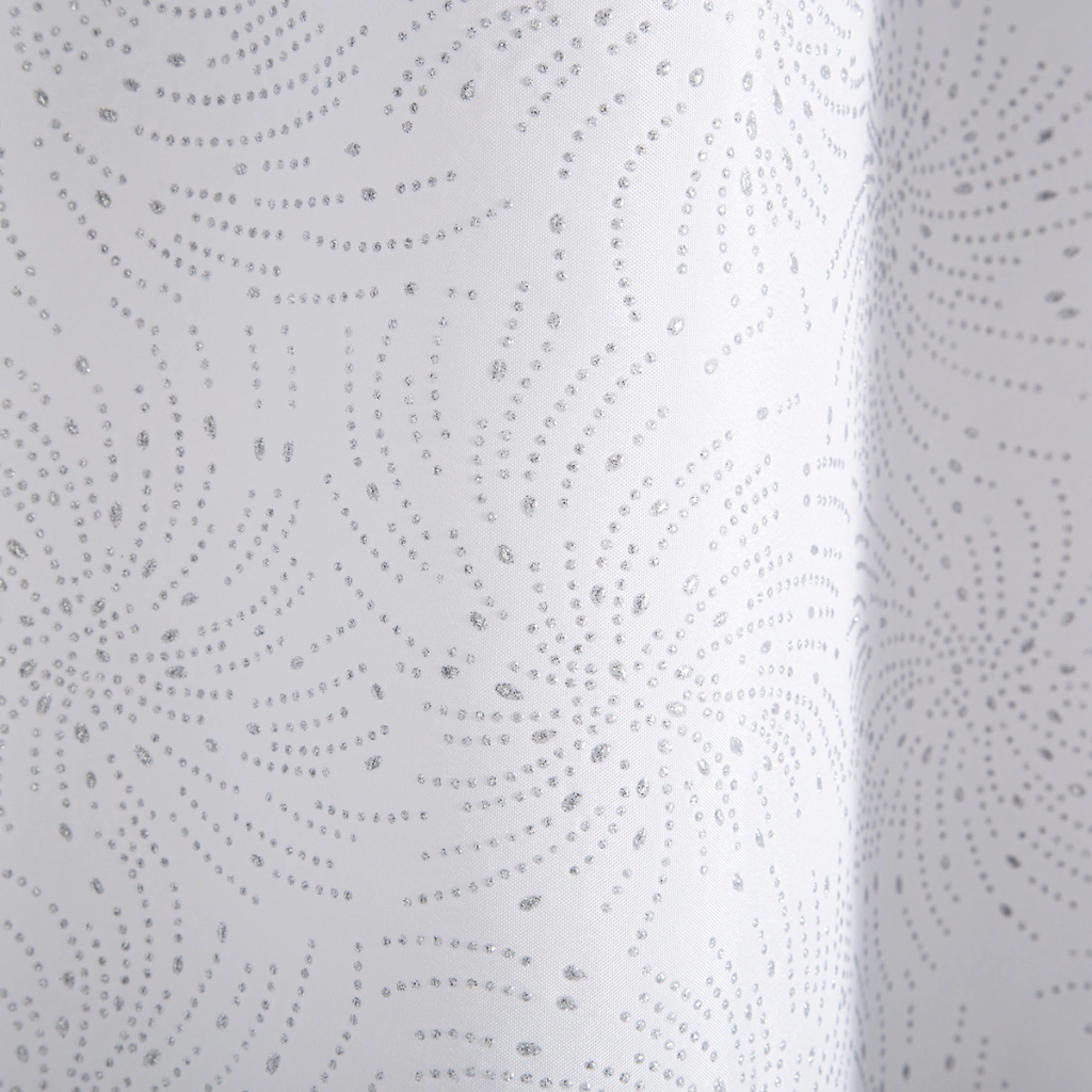 Incluye una cortina teflonada de 180 x 180 cm con estampa especial de glitter y un deslumbrante efecto brillo.